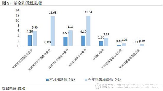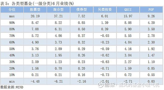 6月,各公募基金指数都录得正收益,股票型、QDII、夹杂型发达居前,涨幅超3.5%,FOF指数涨幅近2%、债券型0.48%、货币0.11%、另类仅为0.03%。